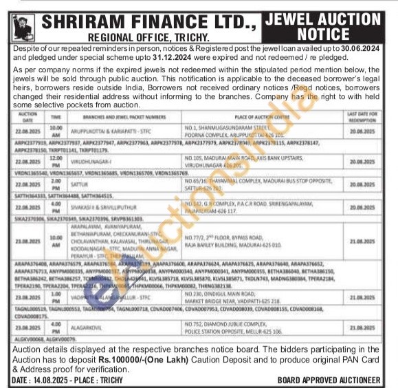 Shriram Finance Ltd Gold Auctions Auction in Virudhunagar