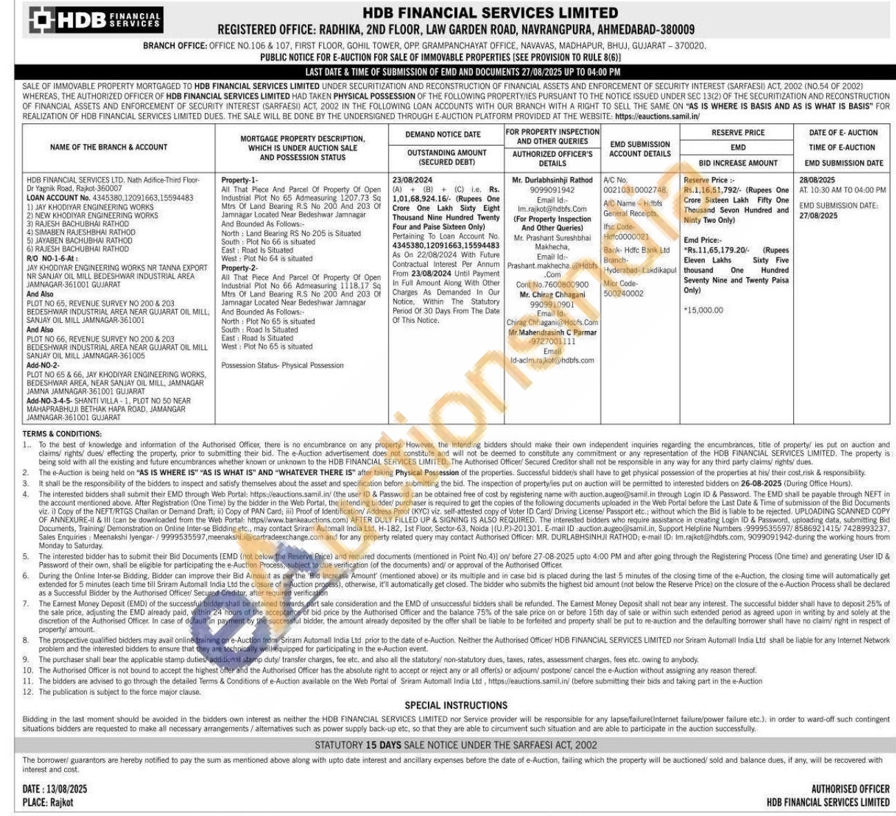 Mr. Durlabhsinhji Rathod :9099091942,Mr. Chirag Chhagani :990991090,Mr.Mahendrasinh C Parmar :9727001111