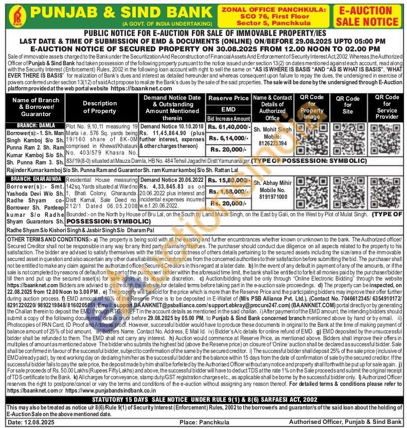 Residential House measuring 142sq. Yards situated at Ward no 1. Bhati Colony, Gharaunda Dist Kamal, Sale Deed no. 212/1 Dated 06.05.2008 Bounded: on the North by House of Bru Lal, on the South by Land Mulak Singh, on the East by Gali, on the West by Plot of Mulat Singh