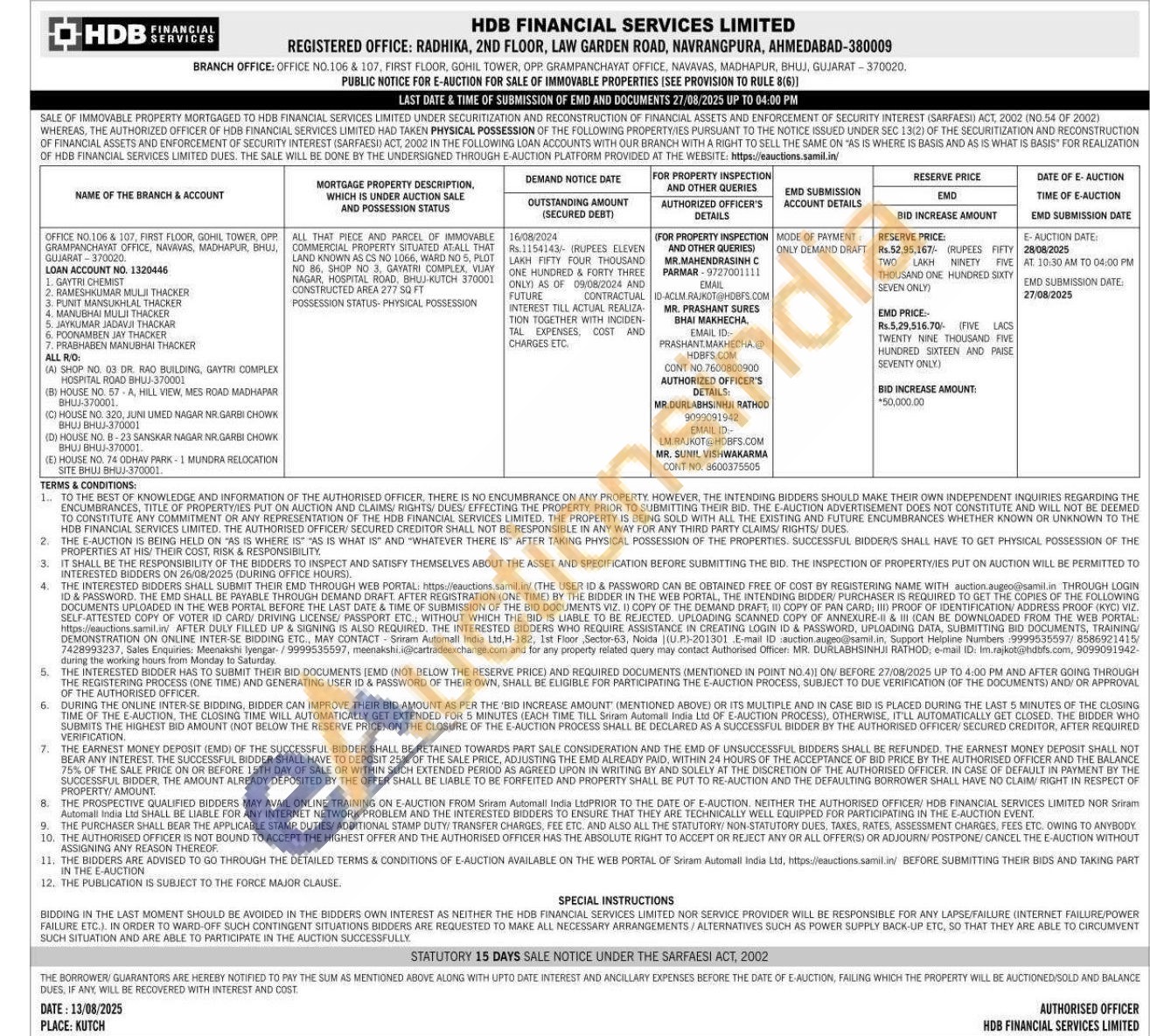 ALL THAT PIECE AND PARCEL OF IMMOVABLE COMMERCIAL PROPERTY SITUATED AT ALL THAT LAND KNOWN AS ASICS CS NO 1066, WARD NO 5, PLOT NO 86. SHOP NO 3. GAYATRI GAYATRI COMPLEX VIJAY NAGAR HOSPITAL ROAD, BHUJ-KUTCH 370001 CONSTRUCTED AREA 277 SQ FT