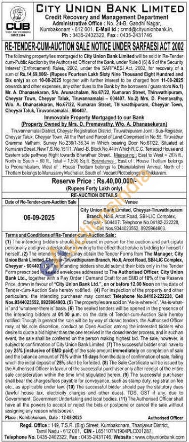 Tiruvannamalai District, Cheyyar Registration District, Tiruvathipuram Joint I Sub-Registrar, Cheyyar Taluk, Cheyyar Town, All the Part and Parcel of Land Comprised in No.55, Tiruvathur Gramma Natham, Survey No.236/1-36.34 in Which bearing Door No.67/22, Situated at Kumaran Street, New T.S. No. 151/1, Ward-B. Block No. 44 in Which R.C.C. Terraced House and Eastem side pathway Right towards Bharathair Street. Measuring East to West 26% ft North to South 60 ft., Total 1,590 Sq. ft. Boundaries East of House Thottam belongs to Poonambalam, West of House Thottam belongs to Dhanalakshmi Ammal, North of Thottam belongs to Munusamy Mudhaliar, South of Vacant Plot belongs to Thikkaram