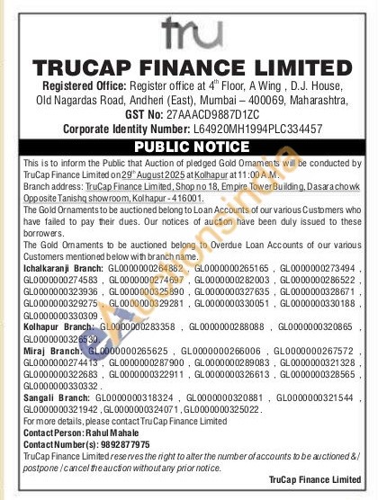 TruCap Finance Ltd Gold Auctions Auction in Kolhapur