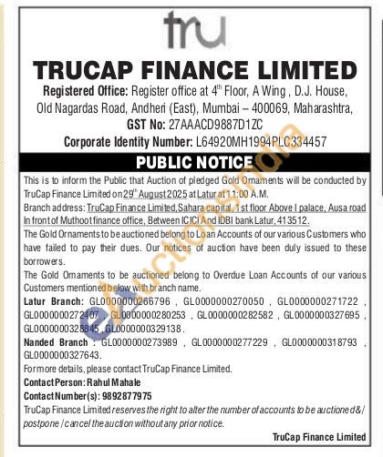 TruCap Finance Ltd Gold Auctions Auction in Latur