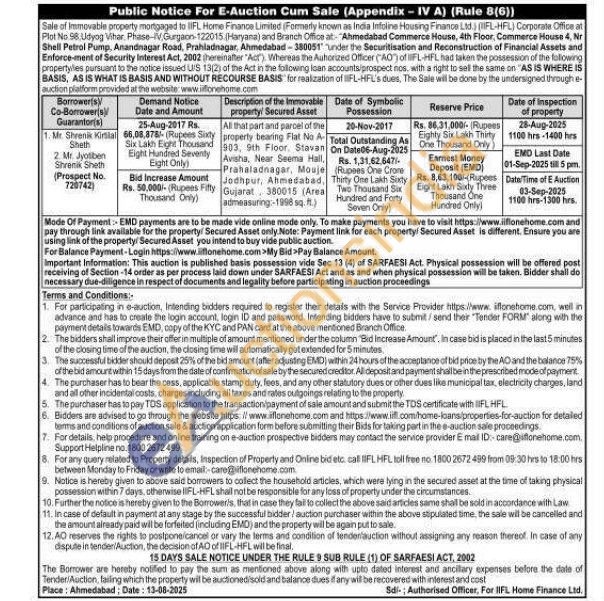 All that part and parcel of the property bearing Flat No A 903, 9th Floor, Stavan Avisha, Near Seema Hall, Prahaladnagar, Mouje Jodhpur, Ahmedabad, Gujarat 380015 (Area admeasuring:-1998 sq.ft)