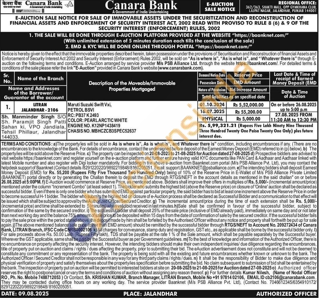 Maruti Suzuki Swift Vxi, PETROL BSVI RC: PB37 K 2493 COLOR: PEARL ARCTIC WHITE ENGINE NO. K12NP1438419 CHASIS NO. MBHCZCB3SPEC52637