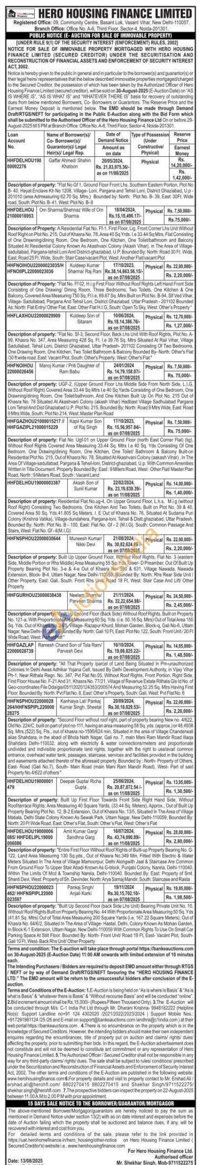 Description of property: "Built Up Second Floor (Back Side) Without Roof Rights, Built on Property No. 121-a, With Proportionate Area Measuring 60 Sq. Yds. (e. 50.16 Sq. Mitrs) Out of Total Area 150 Sq. Yds. Out of Khasra No. 24/5, Village- Razapur Khurd, Mohan Garden, Block-q, Gali No-6, Uttam Nagar, New Delhi-110059. Bounded By: North: Gali 10 Ft, East: Plot No. 122, South: Front Unit/20 Ft Wide Road, West: Part of Plot"