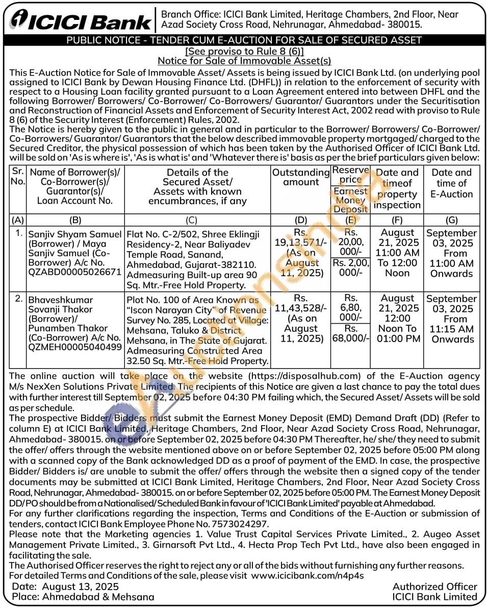 Plot No. 100 of Area Known as "Iscon Narayan City" of Revenue Survey No. 285, Located at Village: Mehsana, Taluko & District Mehsana, in The State of Gujarat. Admeasuring Constructed Area 32.50 Sq. Mtr.-Free Hold Property