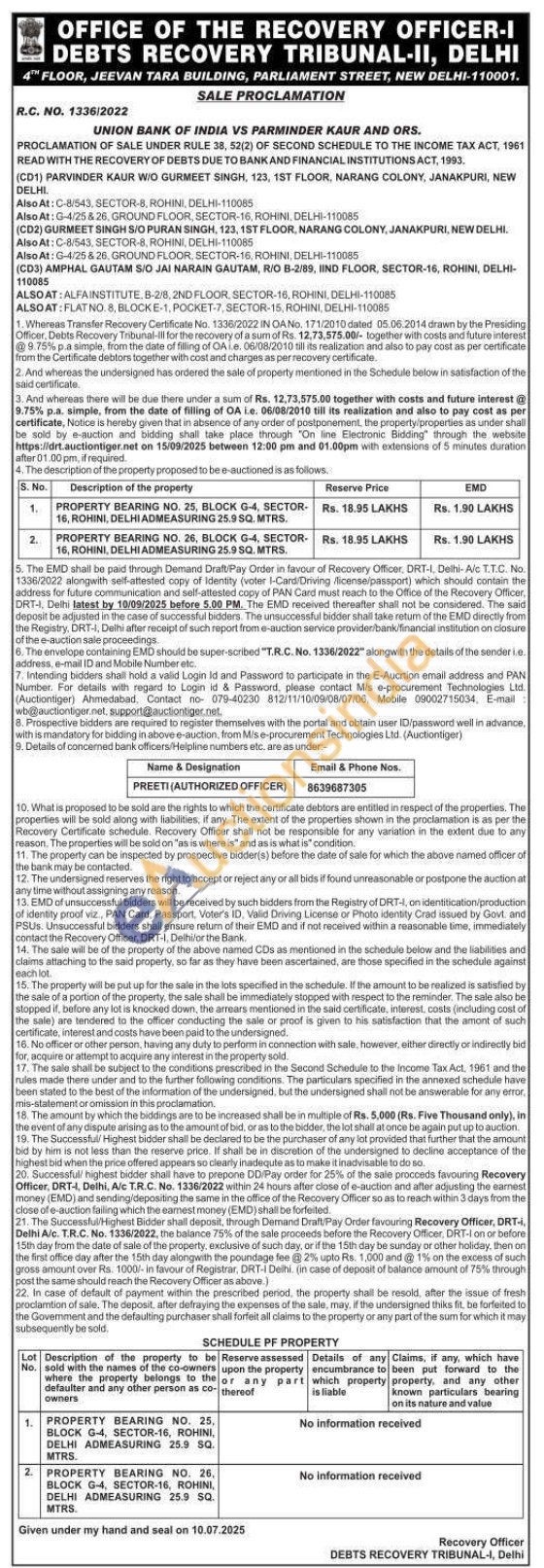 PROPERTY BEARING 25, BLOCK G-4, SECTOR 16 ROHINI, DELHI ADMEASURING 25.5 SQ. MTRS.