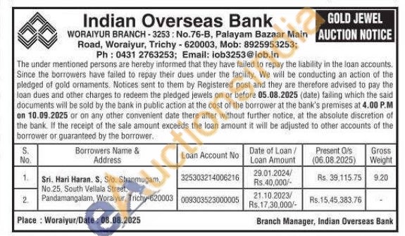 Indian Overseas Bank Gold Auctions Auction in Tiruchirappalli