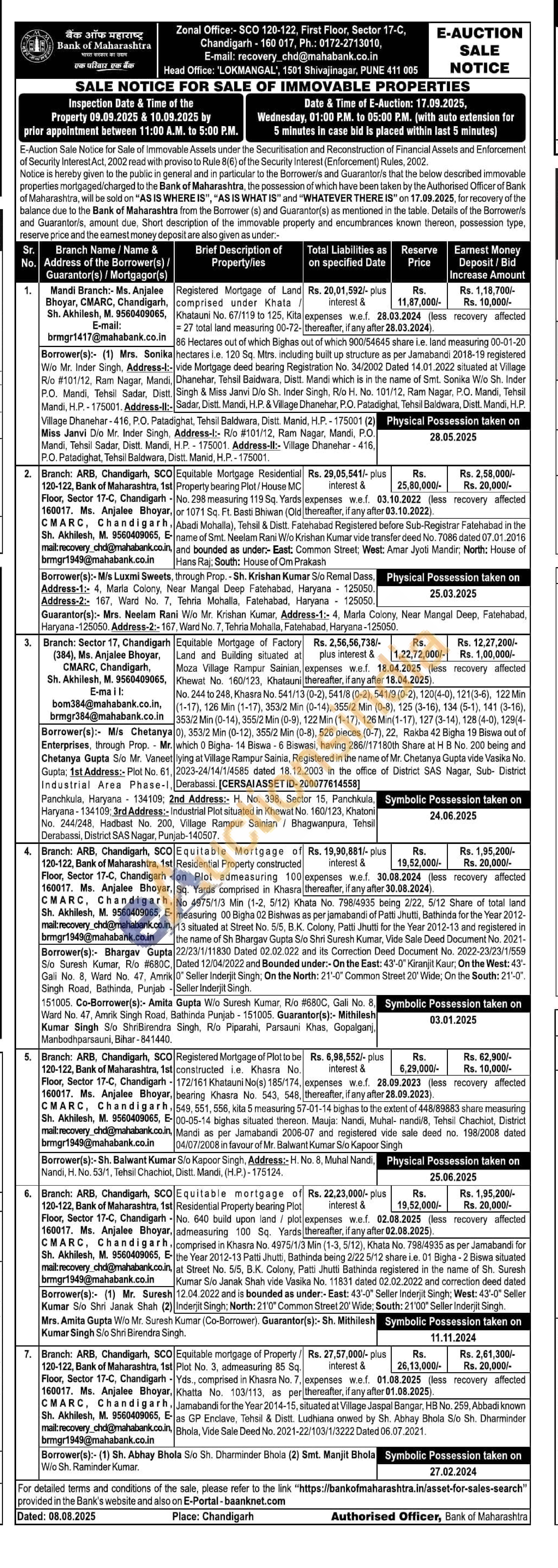 Equitable mortgage of Residential Property bearing Plot No. 640 build upon land / plot admeasuring 100 Sq. Yards comprised in Khasra No. 4975/1/3 Min (1-3, 5/12), Khata No. 798/4935 as per Jamabandi for the Year 2012-13 Patti Jhutti, Bathinda being 2/22 5/12 share i.e. 01 Bigha - 2 Biswa situated at Street No. 5/5, B.K. Colony, Patti Jhutti Bathinda registered in the name of Sh. Suresh Kumar S/o Janak Shah vide Vasika No. 11831 dated 02.02.2022 and correction deed dated 12.04.2022 and is bounded as under:- East: 43'-0" Seller Inderjit Singh; West: 43'-0" Seller ) Inderjit Singh; North: 21'0" Common Street 20' Wide; South: 21'00" Seller Inderjit Singh