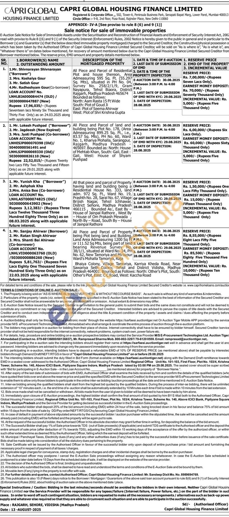 All Piece and Parcel of Residential Plot and house thereon, Area Admeasuring 595 Sq. Ft. (55.297 Sq. Mts), situated in PH No. 04, Survey No. 258/2/1/9, Gram Nayapura, Tehsil Biaora, District P.M.) Rajgarh, Madhya Pradesh 465674 Bounded as follows: North: Aam Rasta 15 Ft Wide South: Plot of Goud Ji East: Plot of Seema Ahirwar West: Plot of Shri Krishna Gupta