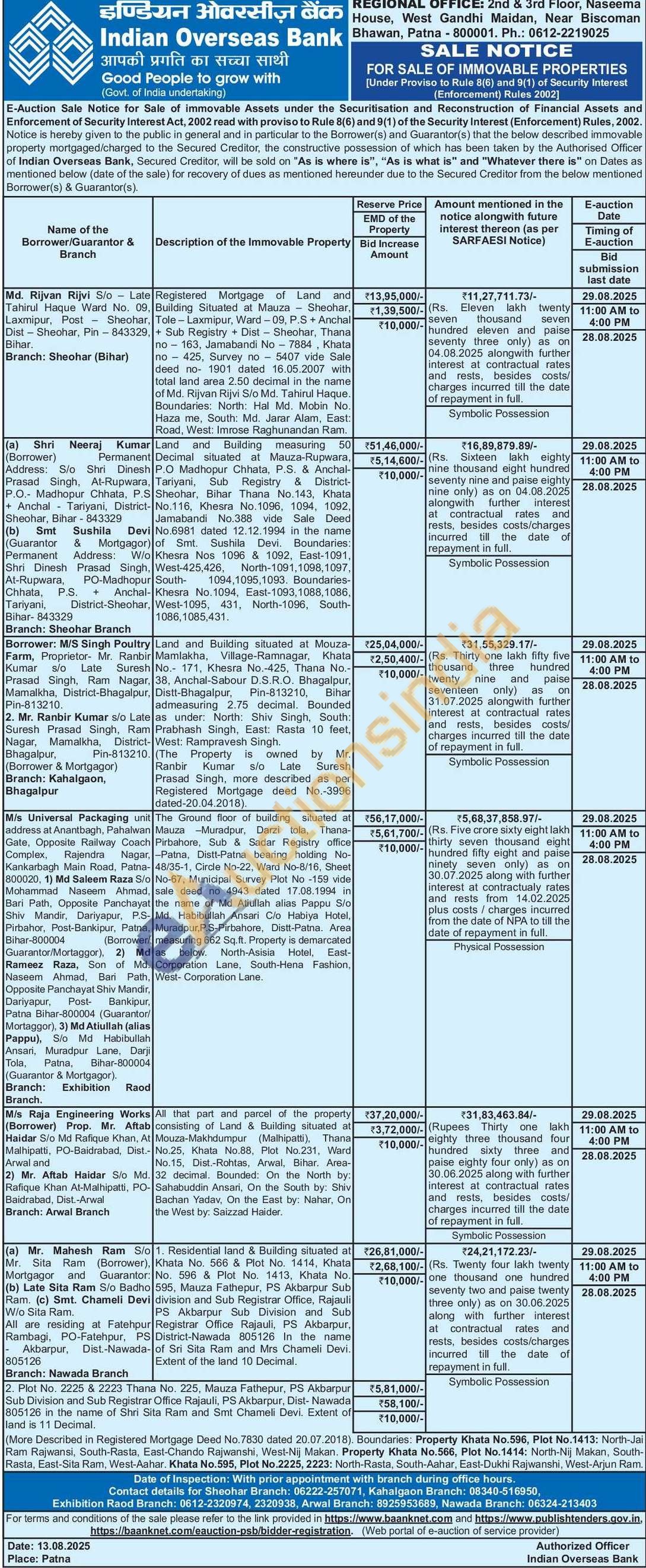 2. Plot No. 2225 & 2223 Thana No. 225, Mauza Fathepur, PS Akbarpur Sub Division and Sub Registrar Office Rajauli, PS Akbarpur, Dist- Nawada 805126 in the name of Shri Sita Ram and Smt Chameli Devi. Extent of land is 11 Decimal More Described in Registered Mortgage Deed No.7830 dated 20.07.2018). Boundaries: Property Khata No.596, Plot No.1413: North-Jai Ram Rajwansi, South-Rasta, East-Chando Rajwanshi, West-Nij Makan. Property Khata No.566, Plot No.1414: North-Nij Makan, South-Rasta, East-Sita Ram, West-Aahar. Khata No.595, Plot No.2225, 2223: North-Rasta, South-Aahar, East-Dukhi Rajwanshi, West-Arjun Ram