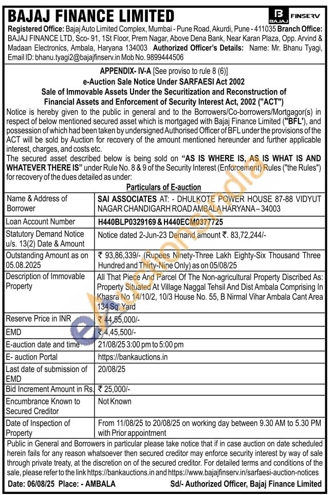 All That Piece And Parcel Of The Non-agricultural Property Discribed As: Property Situated At Village Naggal Tehsil And Dist Ambala Comprising In Khasra No 14/10/2, 10/3 House No. 55, B Nirmal Vihar Ambala Cant Area 134 Sq. Yard