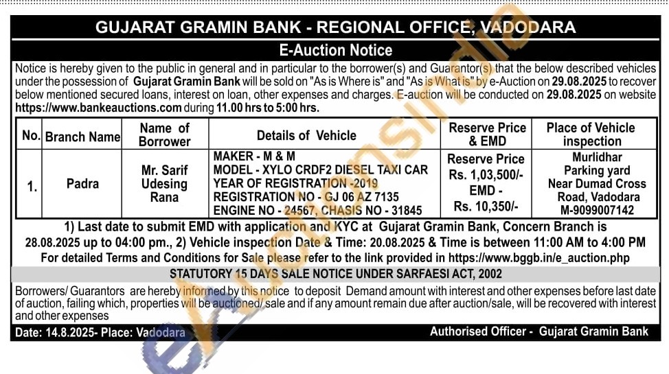 MAKER-M & M MODEL-XYLO CRDF2 DIESEL TAXI CAR YEAR OF REGISTRATION -2019 REGISTRATION NO-GJ 06 AZ 7135 ENGINE NO-24567, CHASIS NO - 31845