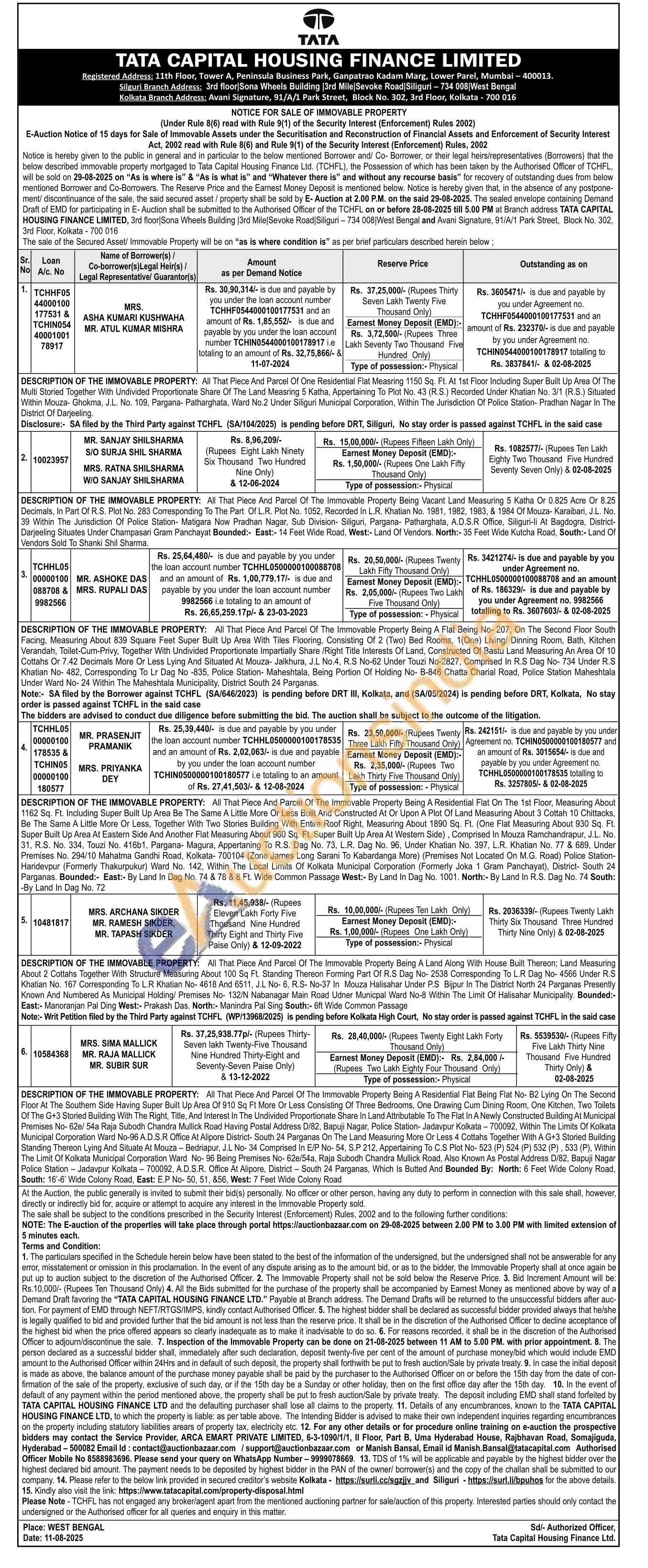 2) All That Piece And Parcel Of The Immovable Property Being Vacant Land Measuring 5 Katha Or 0.825 Acre Or 8.25 Decimals, In Part Of R.S. Plot No. 283 Corresponding To The Part Of L.R. Plot No. 1052, Recorded In L.R. Khatian No. 1981, 1982, 1983, & 1984 Of Mouza- Karaibari, J.L. No. 39 Within The Jurisdiction Of Police Station- Matigara Now Pradhan Nagar, Sub Division- Siliguri, Pargana- Patharghata, A.D.S.R Office, Siliguri-li At Bagdogra, District-Darjeeling Situates Under Champasari Gram Panchayat Bounded:- East:- 14 Feet Wide Road, West:- Land Of Vendors. North:- 35 Feet Wide Kutcha Road, South:- Land Of Vendors Sold To Shanki Shil Sharma