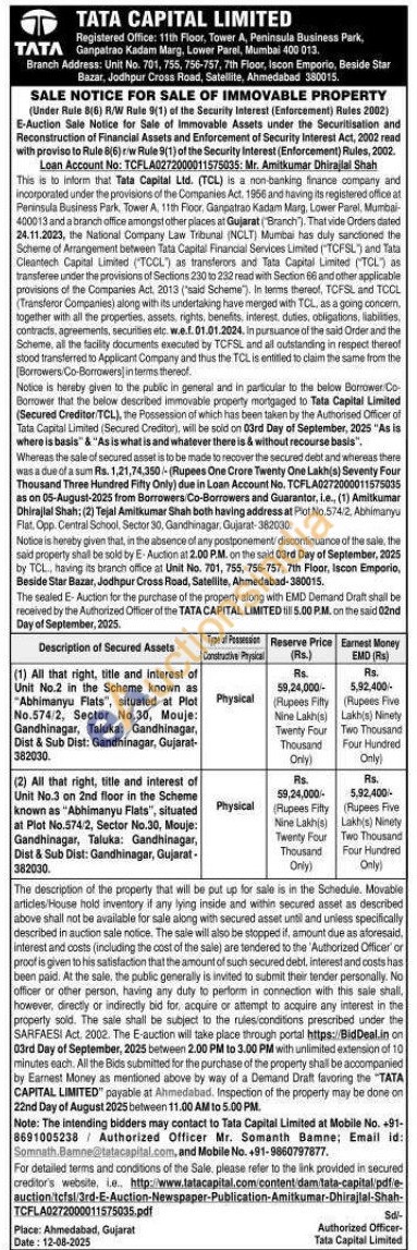 (1) All that right, title and interest of Unit No.2 in the Scheme known as "Abhimanyu Flats", situated at Plot No.574/2, Sector No.30, Mouje: Gandhinagar, Taluka: Gandhinagar, Dist & Sub Dist: Gandhinagar, Gujarat-382030.