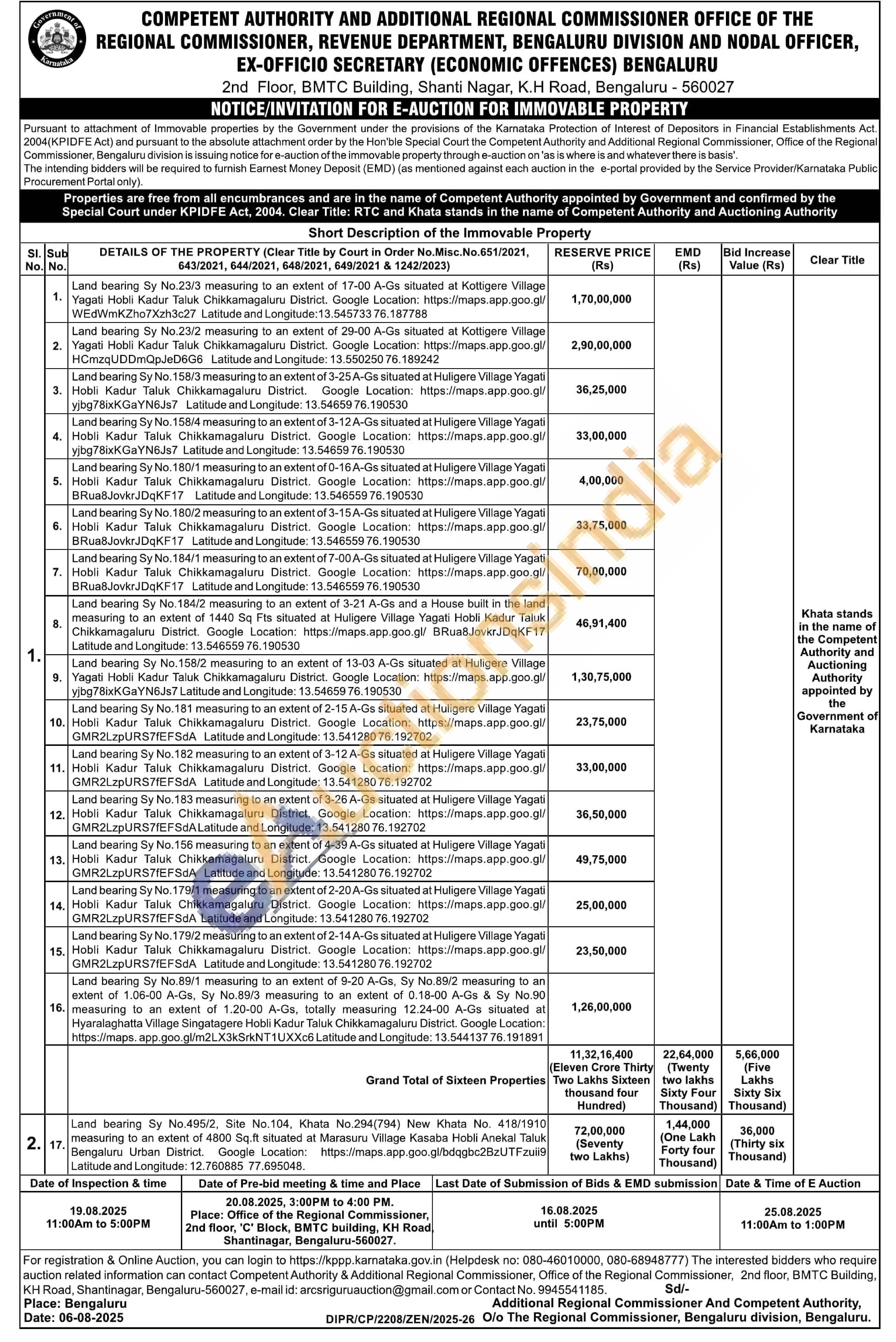 Land bearing Sy No.23/3 measuring to an extent of 17-00 A-Gs situated at Kottigere Village Yagati Hobli Kadur Taluk Chikkamagaluru District. Google Location: https://maps.app.goo.gl/WEdWmKZho7Xzh3c27 Latitude and Longitude: 13.545733 76.187788