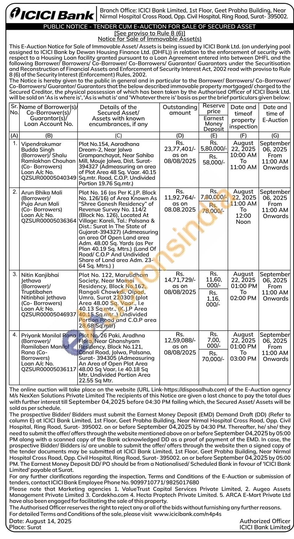 Plot No. 16 (as Per K.J.P. Block No. 126/16) of Area Known As "Shree Ganesh Residency" of Revenue Survey No. 114/2 (Block No. 126), Located At Village: Kareli, Tal.: Palsana & Dist.: Surat In The State of Gujarat-394327) (Admeasuring an area Of Open Land area Adm. 48.00 Sq. Yards (as Per Plan 40.19 Sq. Mtrs.) (Land Of Road/C.O.P And Undivided Share of Land area Adm. 23-64 Sq. Mtrs.))