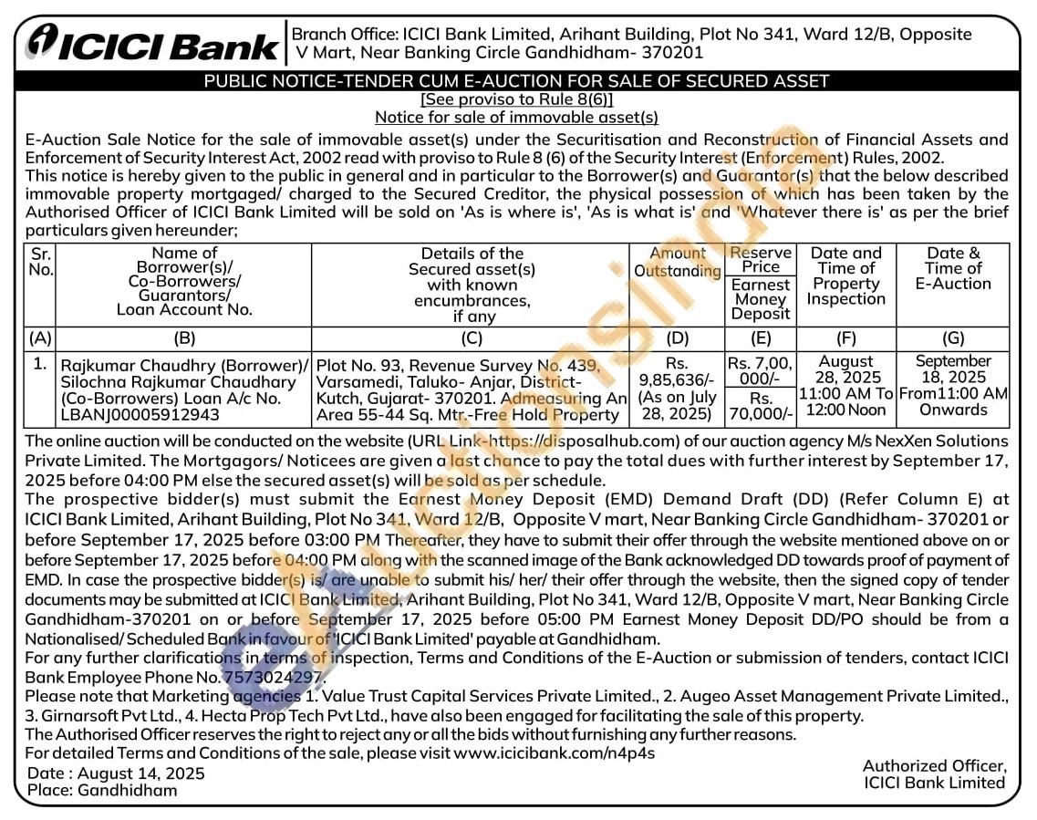 Plot No. 93, Revenue Survey No. 439, Varsamedi, Taluko- Anjar, District-Kutch, Gujarat-370201. Admeasuring An Area 55-44 Sq. Mtr.-Free Hold Property
