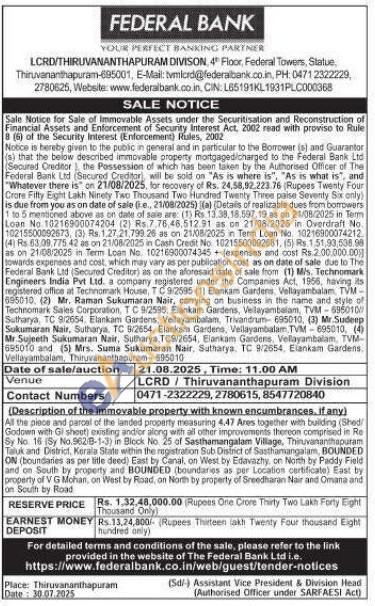 All the piece and parcel of the landed property measuring 4.47 Ares together with building (Shed Godown with Gi sheet) existing andior along with with all a other improvements thereon comprised in in Re Sy No. 16 (Sy No.962/8-1-3) in Block No 25 of Sasthamangalam Village, Thiruvananthapuram Taluk and District, Kerala State within the registration Sub District of Sasthamangalam, BOUNDED ON (boundaries as per litle deed) East by Canal, on West by Edavazhy, on North by Paddy Field and on South by property and BOUNDED (boundaries as per Location certificate) East by property of V G Mohan, on West by Road, on North by property of Sreedharan Nair and Omana and on South by Road