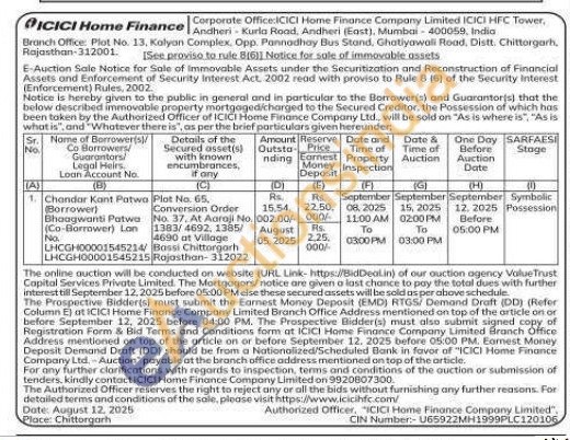 Plot No. 65, Conversion Order No. 37. At Aaraji No. SBET 2697/EBET 4690 at Village Bassi Chittorgarh Rojasthan-312022