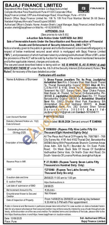 All The Piece And Parcel Of Property No. 768/768/1-769 City Survey No. 4181 And 4182 Tharad Dist. Banaskantha 385565 Along With Proportionate Share In Common Areas (Area Adm. 426 Sq.Ft.) Bounded As: On East- Public Road; On West- Back Side Of House Of Samjbhai Vadhusbhai Delna Vora; On North Door And Road; On South-Varando Of Lovana Porkhaa Jesingbhai Kalyan