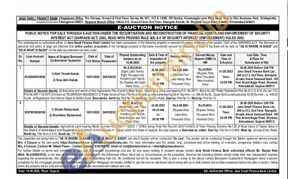 Details of Secured Assets: Agricultural Land bearing Block/ Survery No.1253/1+ 1253/2+ 1256/2 being Final Plot No.243 (243/1+243/2) of Town Planing Scheme No.128 of Moje Vatva of Taluka Vatva in the District of Ahmedabad and Registration Sub-District of Ahmedabad-11 (Vatva) within the State of Gujarat, the said prperty is Bounded as under: East by: Flat No A-2-608, West by: Society Entry Road, North by: Flat No.A-2 610, South by: TP Road.