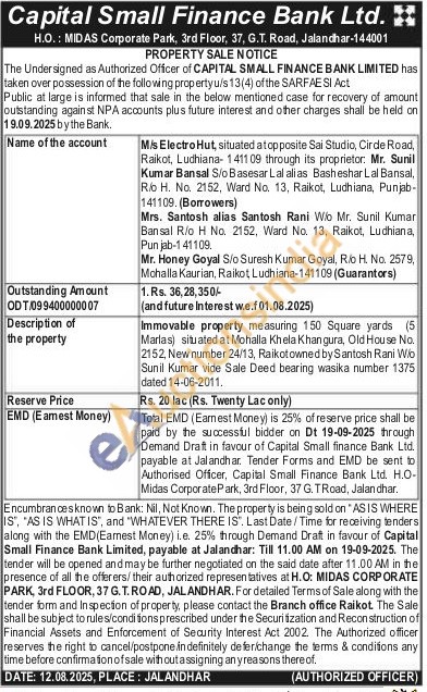 Immovable property measuring 150 Square yards (5) Marlas) situated at Mohalla Khela Khangura, Old House No. 2152, New number 24/13, Raikotowned by Santosh Rani W/o Sunil Kumar vide Sale Deed bearing wasika number 1375 dated 14-06-2011