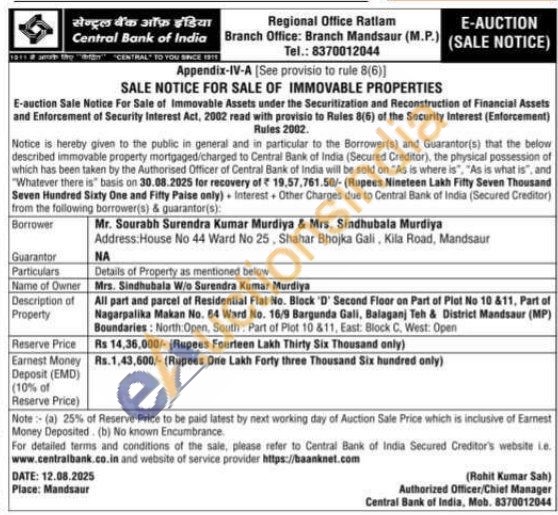 All part and parcel of Residential Flat No. Block 'D' Second Floor on Part of Plot No 10 &11, Part of Nagarpalika Makan No. 64 Ward No. 16/9 Bargunda Gali, Balaganj Teh & District Mandsaur (MP)