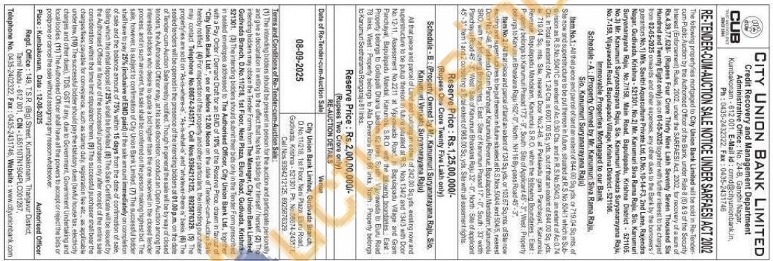 Immovable Properties Mortgaged to our Bank Schedule-A: (Property Owned by Mr. Kanumuri Siva Rama Raju, Sio. Kanumuri Suryanarayana Raju)
