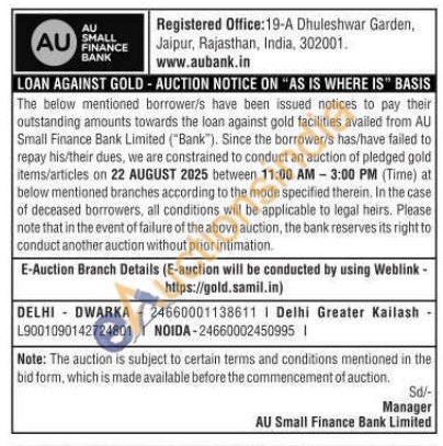 AU Small Finance Bank Gold Auctions Auction in New Delhi