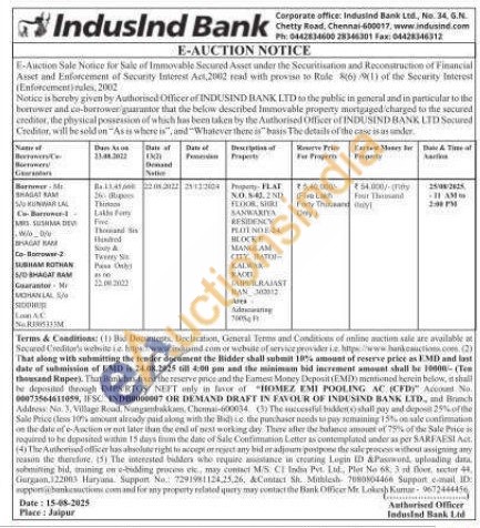 Property FLAT NO.541.2 NID FLOOR, SHRI SANWARIYA RESIDENCY PROINDE-24 BLOCKE MANGSAM CITY BATOI KALWAR RAXI JAIPURAJAST BAN 302012 Area Adoscaanse 70005 Ft