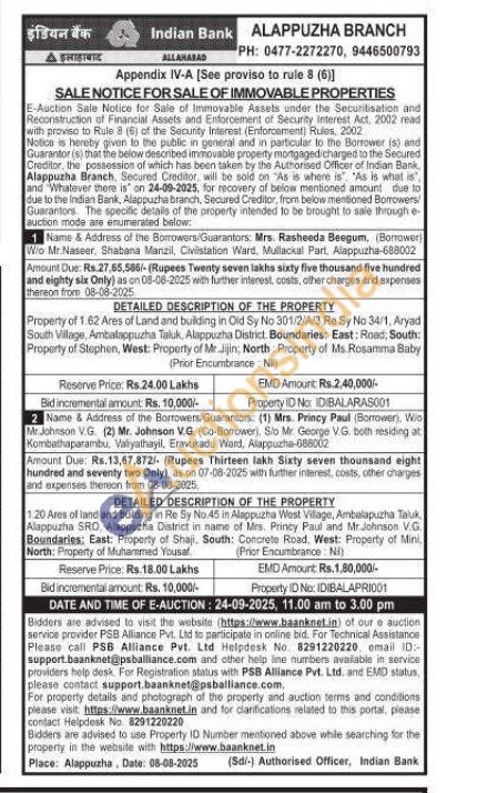 Property of 1.62 Ares of Land and building in Old Sy No 301/2/A/3, Re Sy No 34/1, Aryad South Village, Ambalappuzha Taluk. Alappuzha District. Boundaries: East: Road, South: Property of Stephen, West: Property of Mr. Jijin: North Property of Ms. Rosamma Baby