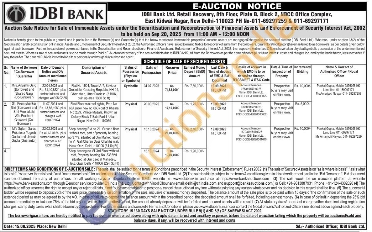1) Flat No 1604, Tower A-7, Saviour Greenisle, Crossing Republic, NH-24, Ghaziabad, Utter Pradesh (3 BHK, built up area 1600 Sq ft