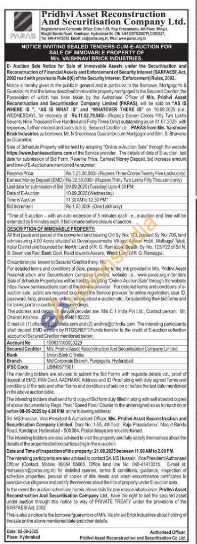 Sri. MS Hussain, Vice President Authorised Officer (Contact. Mobile: 80084 55665. Office land line No: 040-41413315