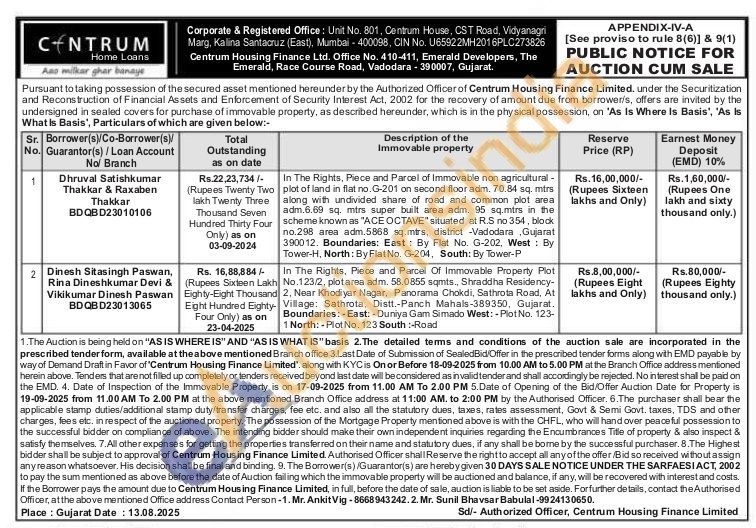 In The Rights, Piece and Parcel Of Immovable Property Plot No.123/2, plotarea adm. 58.0855 sqmts., Shraddha Residency-2, Near Khodiyar Nagar, Panorama Chokdi, Sathrota Road, At Village: Sathrota, Distt.-Panch Mahals-389350, Gujarat. Boundaries: - East: -Duniya Gam Simado West: -Plot No. 123-1 North: -Plot No. 123 South :-Road