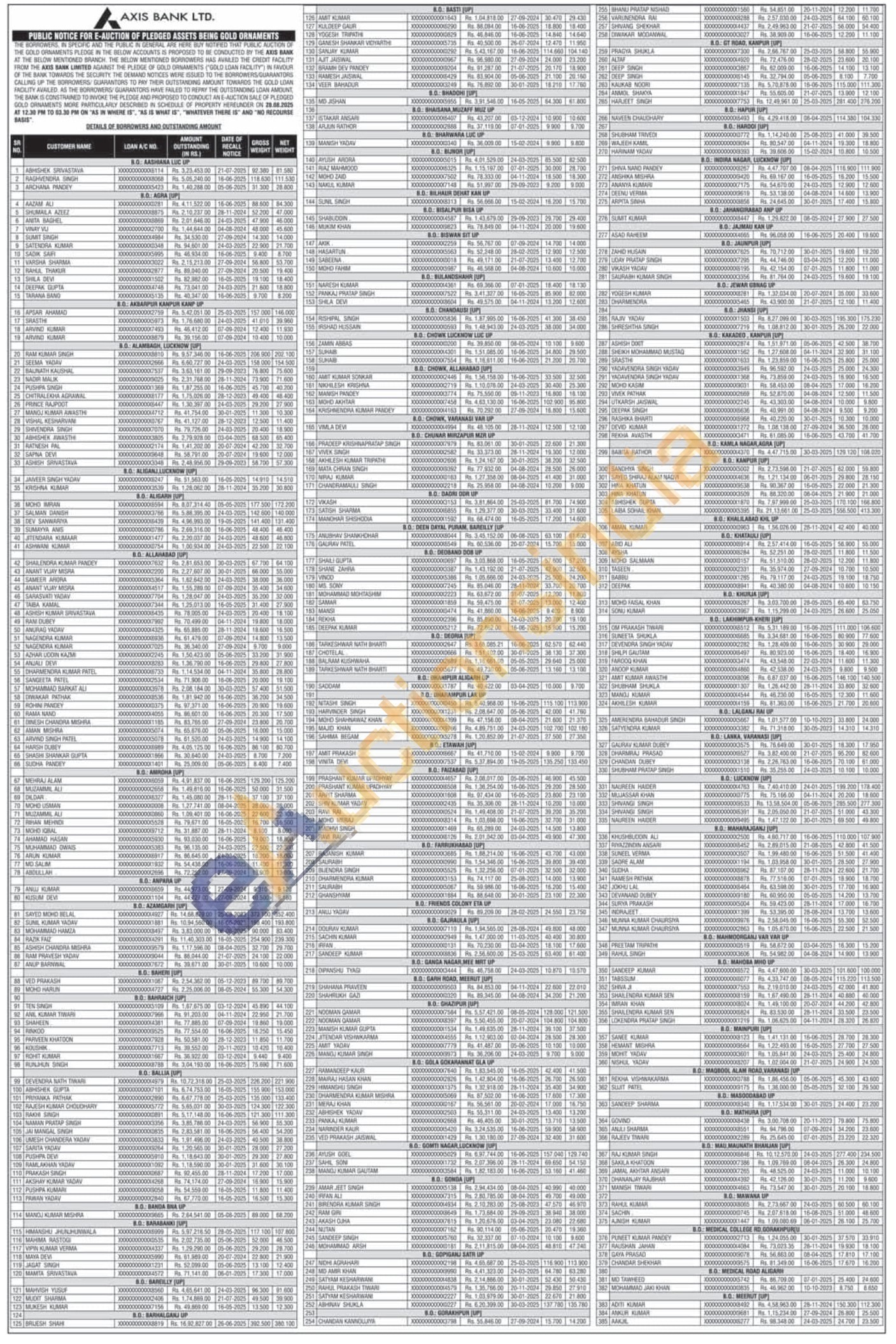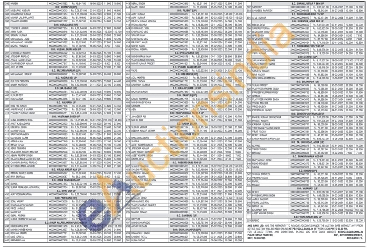 Axis Bank Gold Auctions Auction in Lucknow