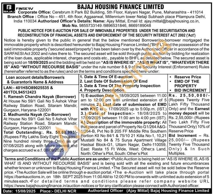 Authorized Officer's Details: Name: Ajay Mittal Mobile No : 9855733149 / 9896531846 / 8669189048