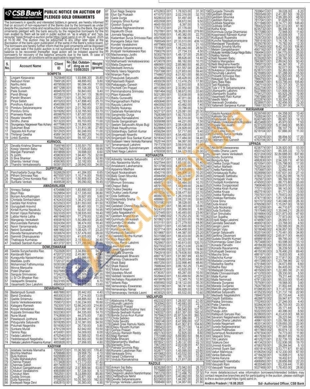 CSB Bank Gold Auctions Auction in Kurnool