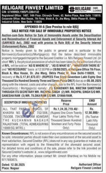 ALL THAT PART & PARCEL OF KHASRA NO. 751/308, 752/308, 753/308 754/308, GRAM ADAKSAR THE KUCHAMAN NAGAUR RAJASTHAN (TOTAL ADMEASURING 10000 SQ. MTRS)