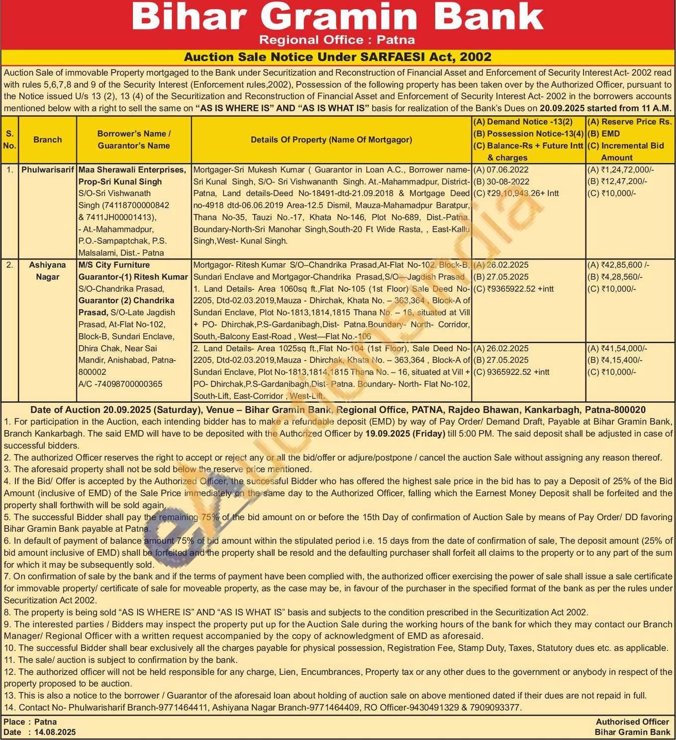 Contact No- Phulwarisharif Branch-9771464411, Ashiyana Nagar Branch-9771464409, RO Officer-9430491329 & 7909093377