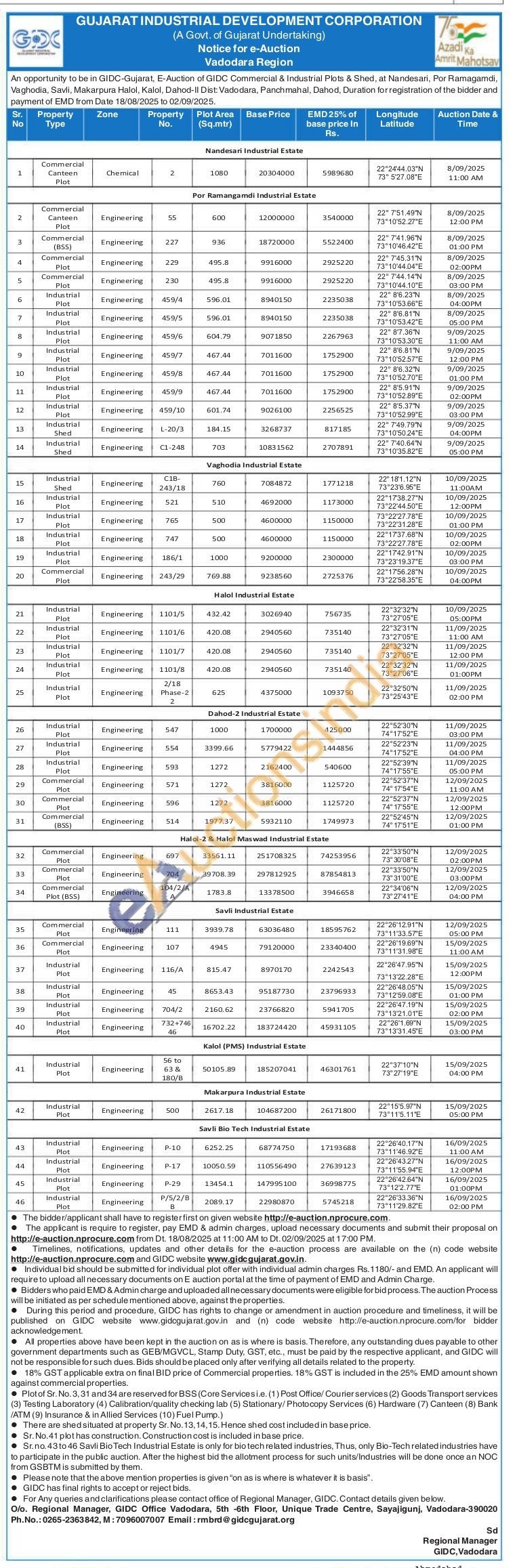 Contact Ph.No.: 0265-2363842, M: 7096007007 Email: rmbrd@gidcgujarat.org