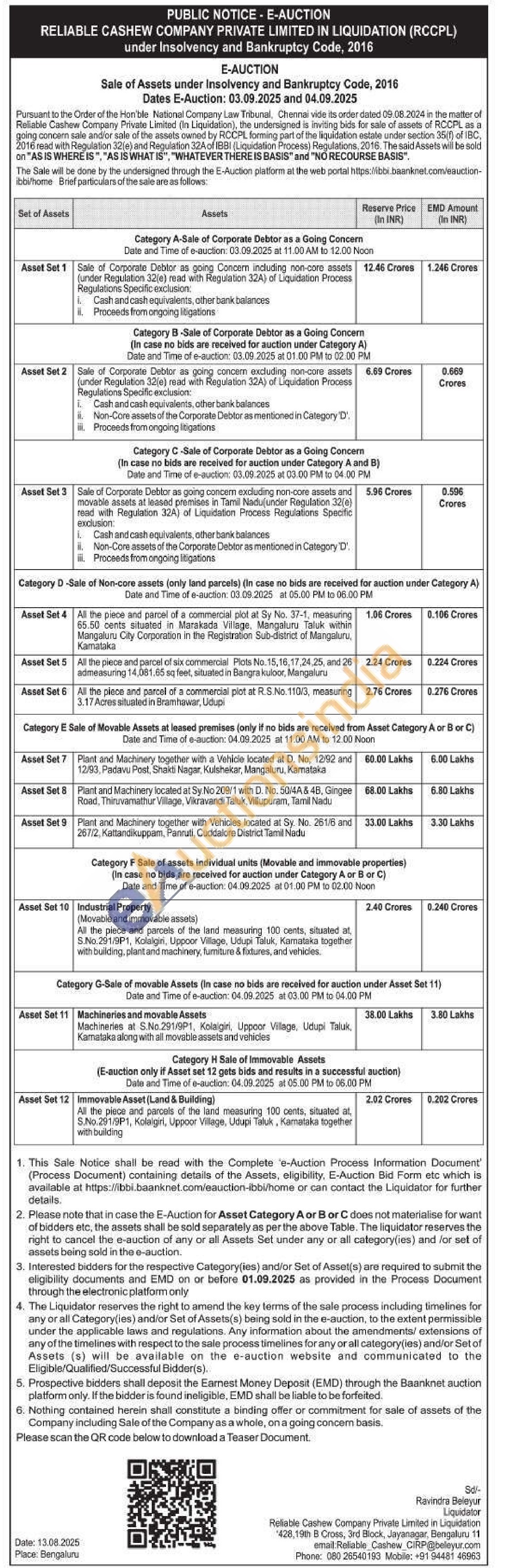 • Auction Start Date :  04-09-2025 03:00 PM