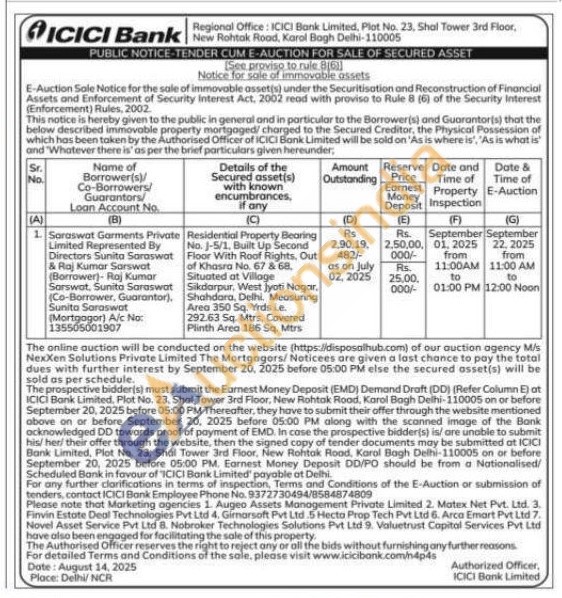 Residential Property Bearing No. J-5/1, Built Up Second Floor With Roof Rights, Out of Khasra No. 67 & 68 Situated at Villoge Sikdarpur, West Jyoti Jyoti Nagar, Shahdara, Delhi, Measuring Area 350 Sq. Yrds ie. 292.63 Sq. Mtrs, Covered Plinth Area 186 Sq. Mtrs