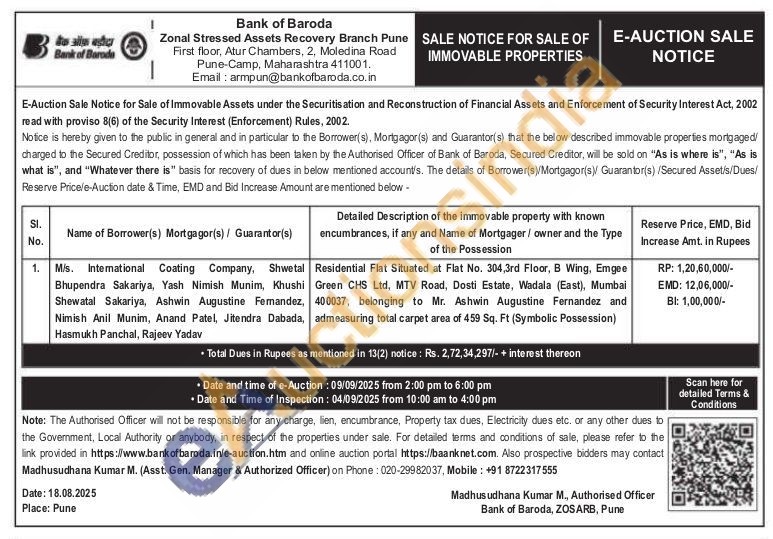 Flat Situated at Flat No. 304,3rd Floor, B Wing, Engee Green CHS Ltd, MTV Road, Dosti Estate, Wadala (East), Mumbai 400037, belonging to Mr. Ashwin Augustine Fernandez and admeasuring total carpet area of 459 Sq. Ft (Symbolic Possession)
