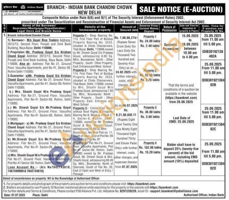 Entire First Floor without Roof Rights at Property Bearing No-8, Block & Pocket C-4. Sector-6. Rohini, Delhi, 110085. owned by Mr. Pradeep Goyal & Mrs. Shashi Goyal, admeasuring 31.69 Sq. Mus Boundaries. North of Plot no. 11. South of Open, East of Plot No. 09 and West of Plot No. 07