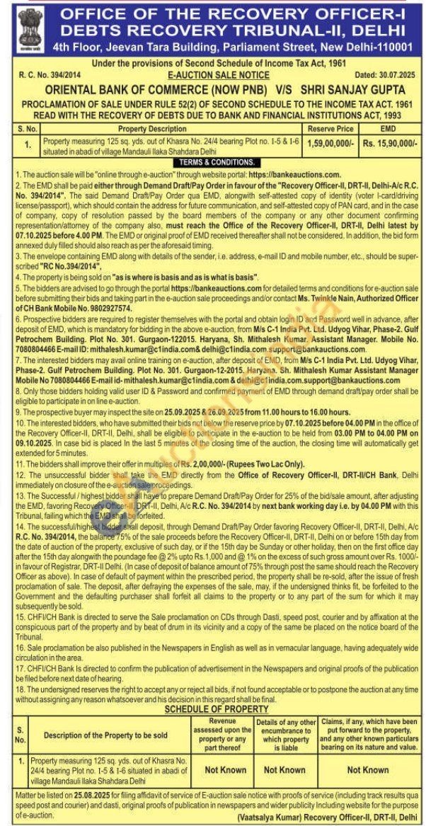 . Property measuring 125 sq. yds. out of Khasra No. 24/4 bearing Plot no. 1-5 & 1-6 situated in abadi of village Mandauli Ilaka Shahdara Delhi