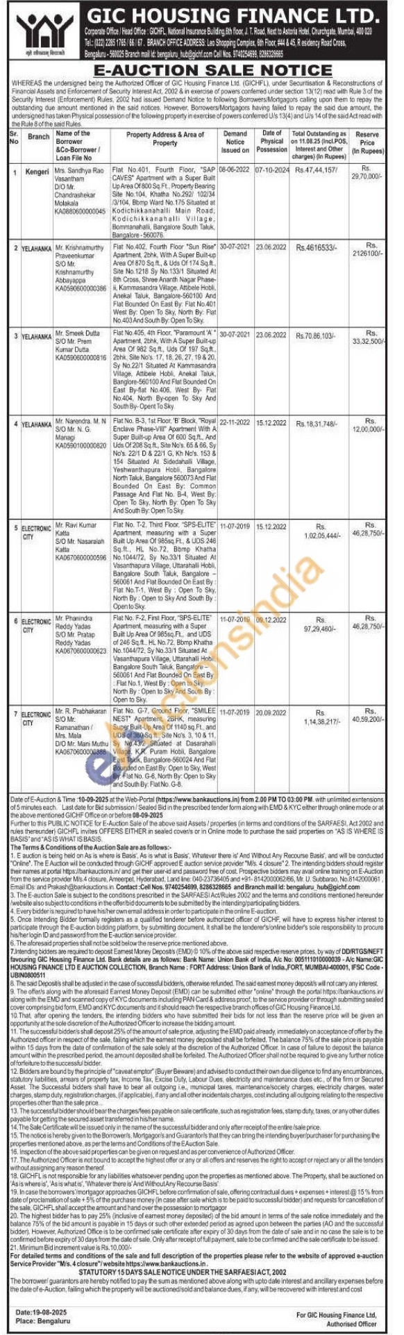 Contact Branch mail id: bengaluru_hub@gicht.com Cell Nos. 9743254699, 8286323665