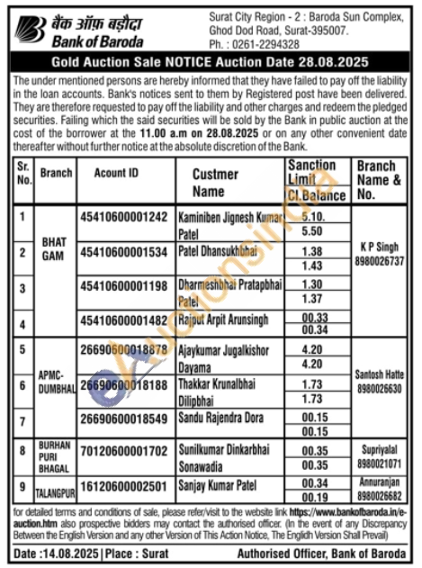 Bank of Baroda Gold Auctions Auction in Surat
