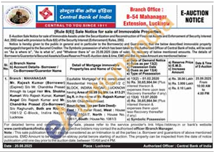 Equitable Mortgage of the Constructed Residential House on C-1061/2, C block , INDIRA NAGAR LUCKNOW.